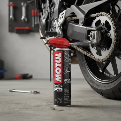 Chain Clean es un poderoso desengrasante en spray, que limpia todo tipo de cadenas de motocicletas (carretera y off-road) e incluso de otro tipo de vehículos (bicicleta, kart, ATV…). Elimina todo depósito incrustado: polvo, barro, arena, tierra, aceite…con gran facilidad. Libre de cloro, con una fórmula que elimina la grasa más extrema es perfectamente apropiado para cadenas del tipo O-ring, X-ring, Z-ring. Se evapora rápidamente.