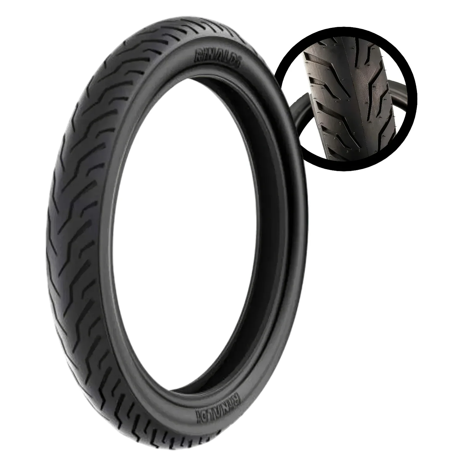 Diseño de banda de rodadura: Patrón de calle con bloques centrales para tracción en asfalto y surcos transversales para drenaje eficiente; perfil redondeado para manejo cómodo en curvas.